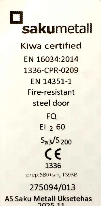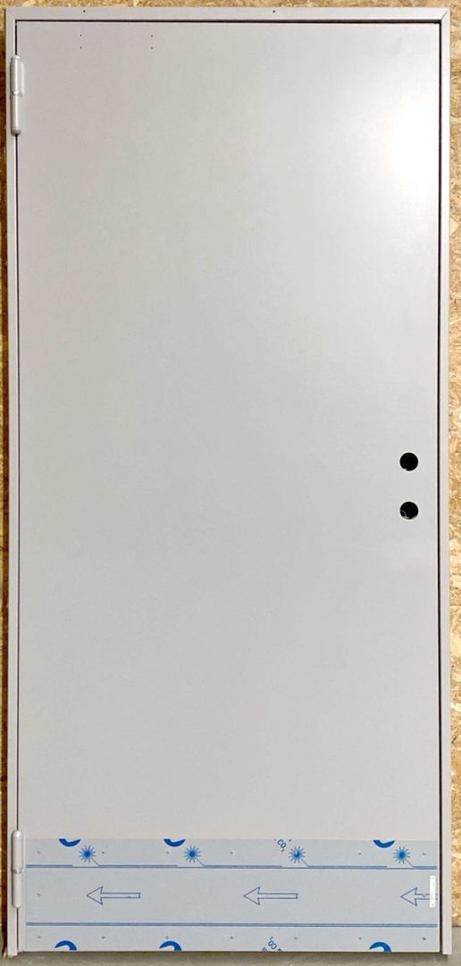 Branddør EL60 i stål, med låsekasse og håndtag og dørlukker