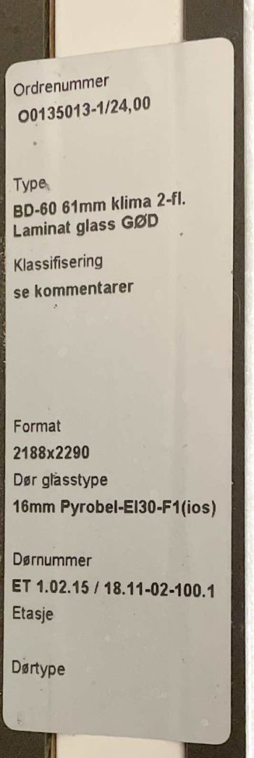 Dobbelt BD-60 branddør 61mm klima 2-fl. Laminat glass GØD.