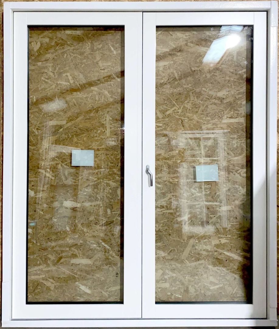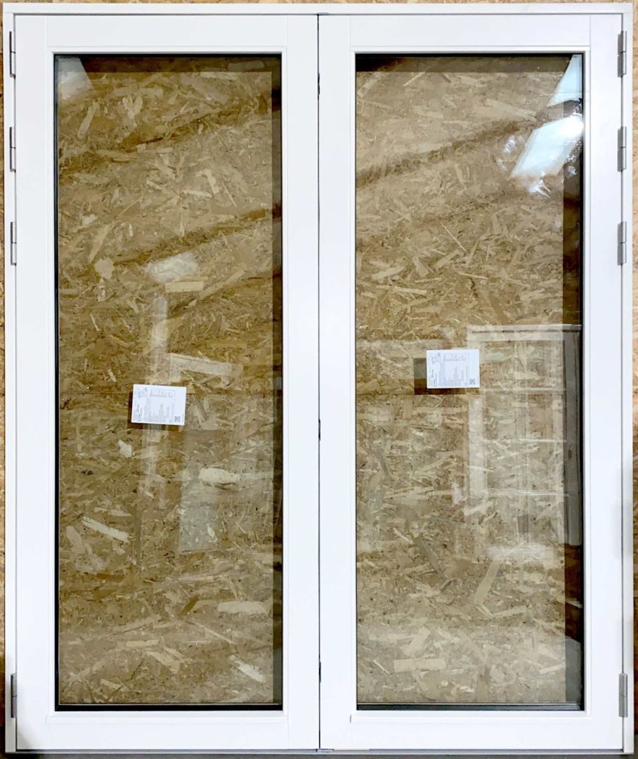 Ny og ubrugt dobbelt terrassedør i træ med 3 lags lavenergiglas – lavt bundstykke.