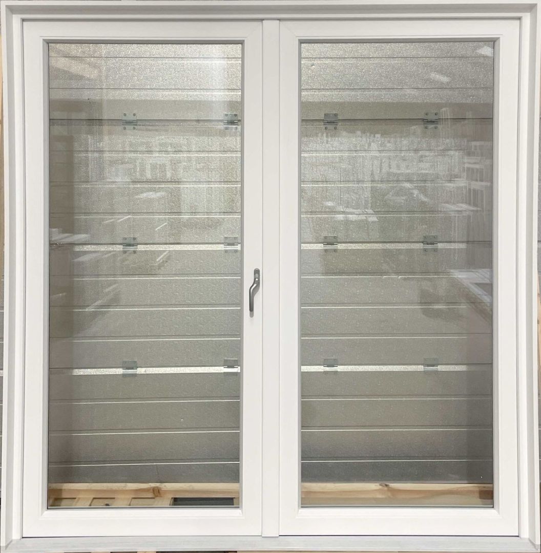 Ny og ubrugt dobbelt terrassedør i plast med 2 lags energiglas.