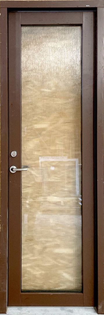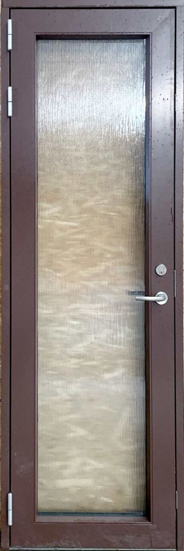 Facadedør i træ/alu med 2 lags energiglas og matteret glas.
