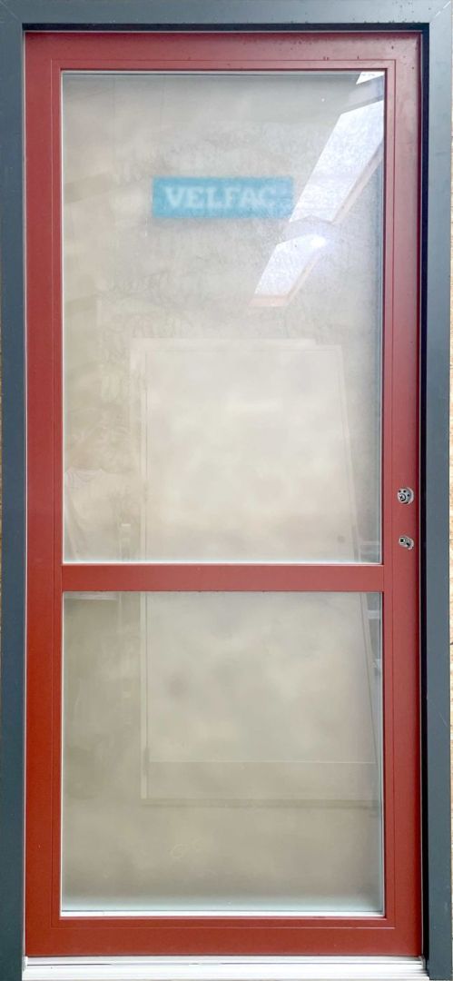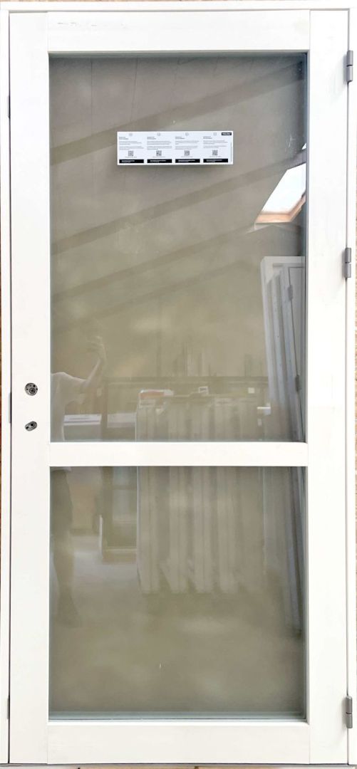 Ny og ubrugt facadedør med 3 lags lavenergiglas og matteret glas.
