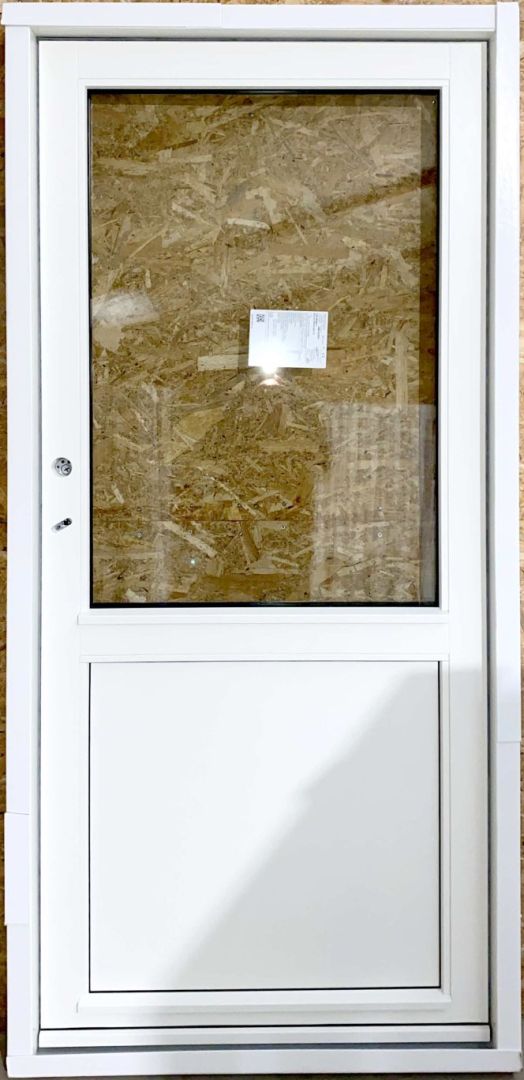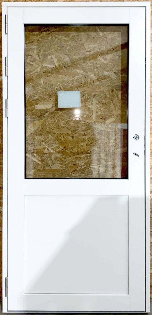 Ny og ubrugt facadedør i træ med 3 lags lavenergiglas – lavt bundstykke – venstre indadgående.