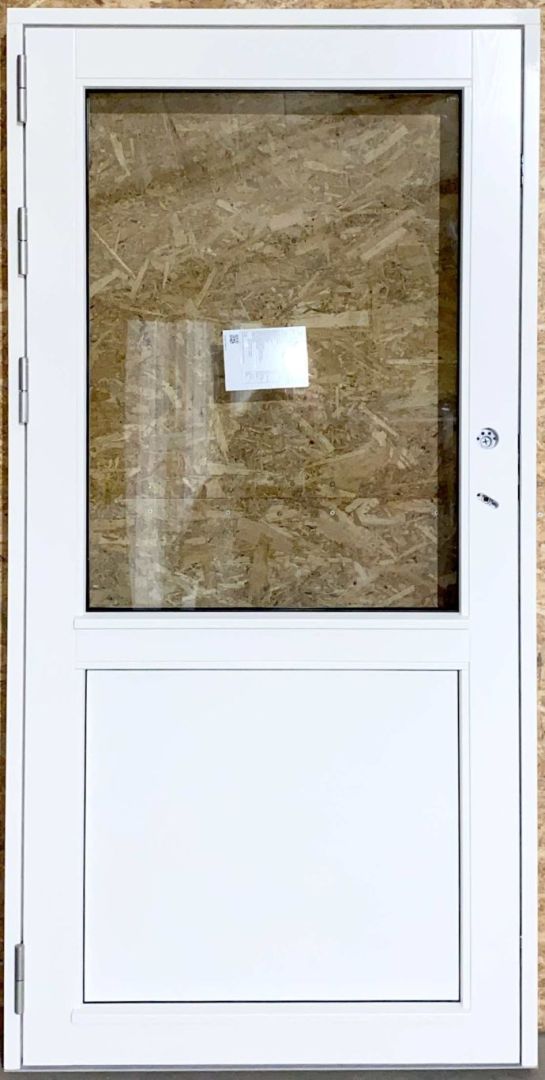 Ny og ubrugt facadedør i træ med 3 lags lavenergiglas – lavt bundstykke – venstre udadgående.
