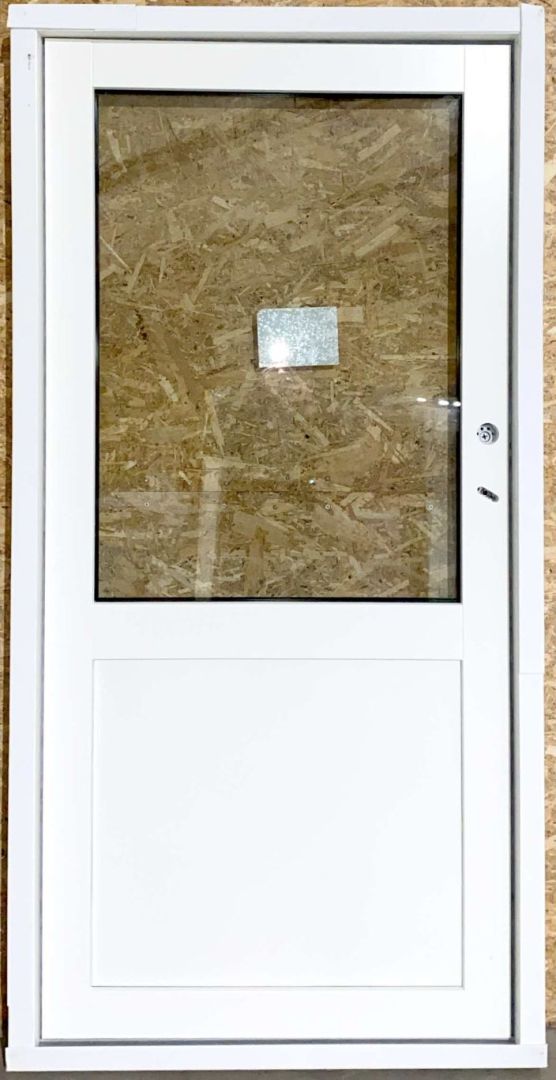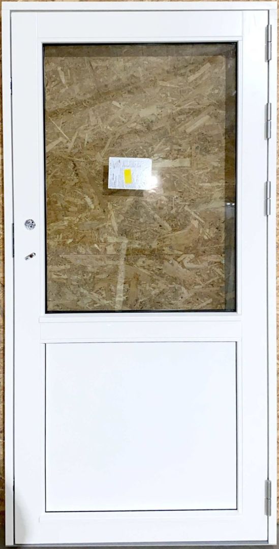 Ny og ubrugt facadedør i træ med 3 lags lavenergiglas – lavt bundstykke – højre udadgående.