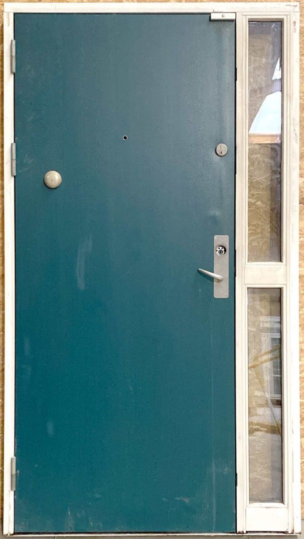 Facadedør med sideparti – lavt bundstykke og med 3 punkt lås