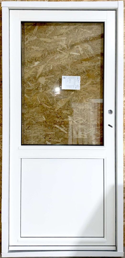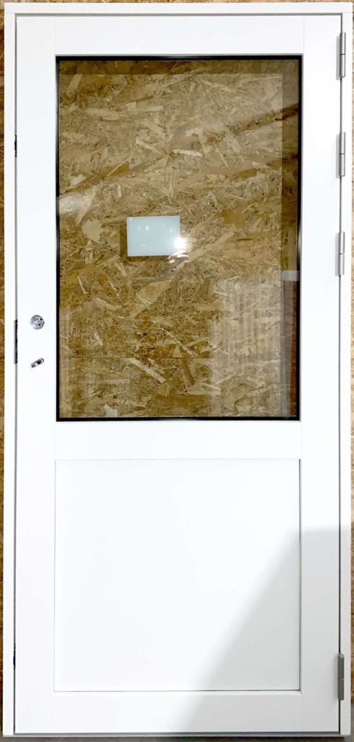 Ny og ubrugt facadedør i træ med 3 lags lavenergiglas – lavt bundstykke – højre indadgående.