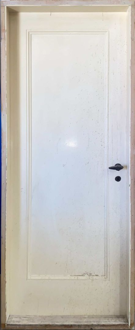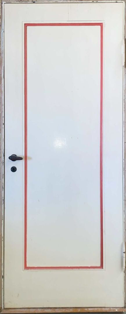 Fyldningsdør med karm og bundstykke.