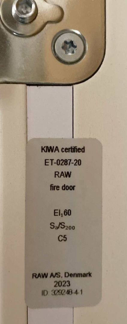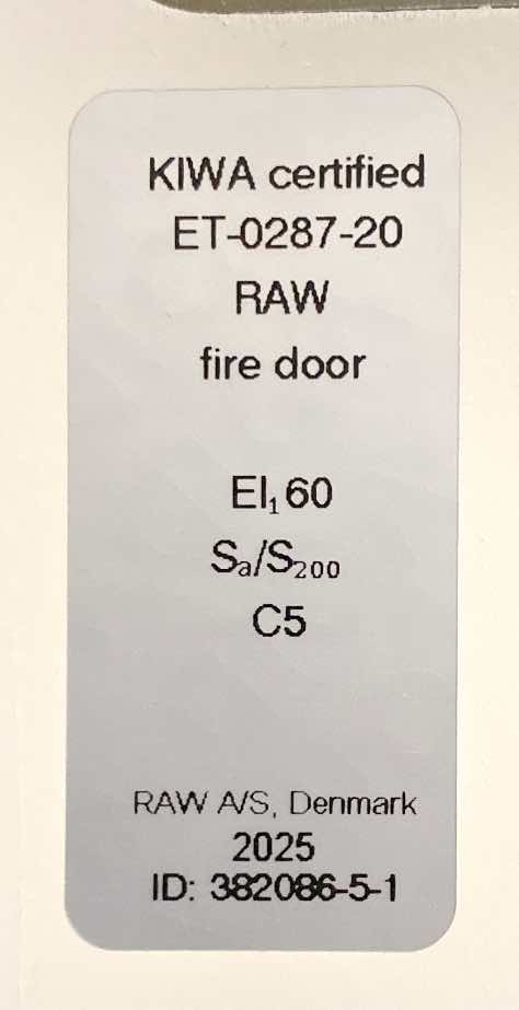 Ny og ubrugt RAW Branddør EI1-60 med karm og hårdttræsbundstykke.