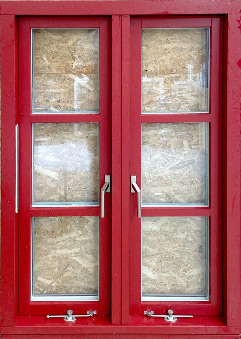 Træ/alu sidehængt vindue med 2 lags lavenergiglas.
