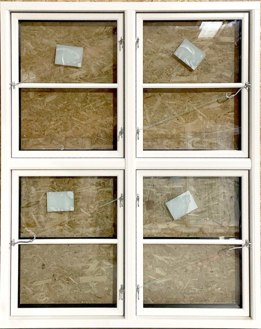 Ny og ubrugt sidehængt vindue i træ/alu med 3 lags lavenergiglas.