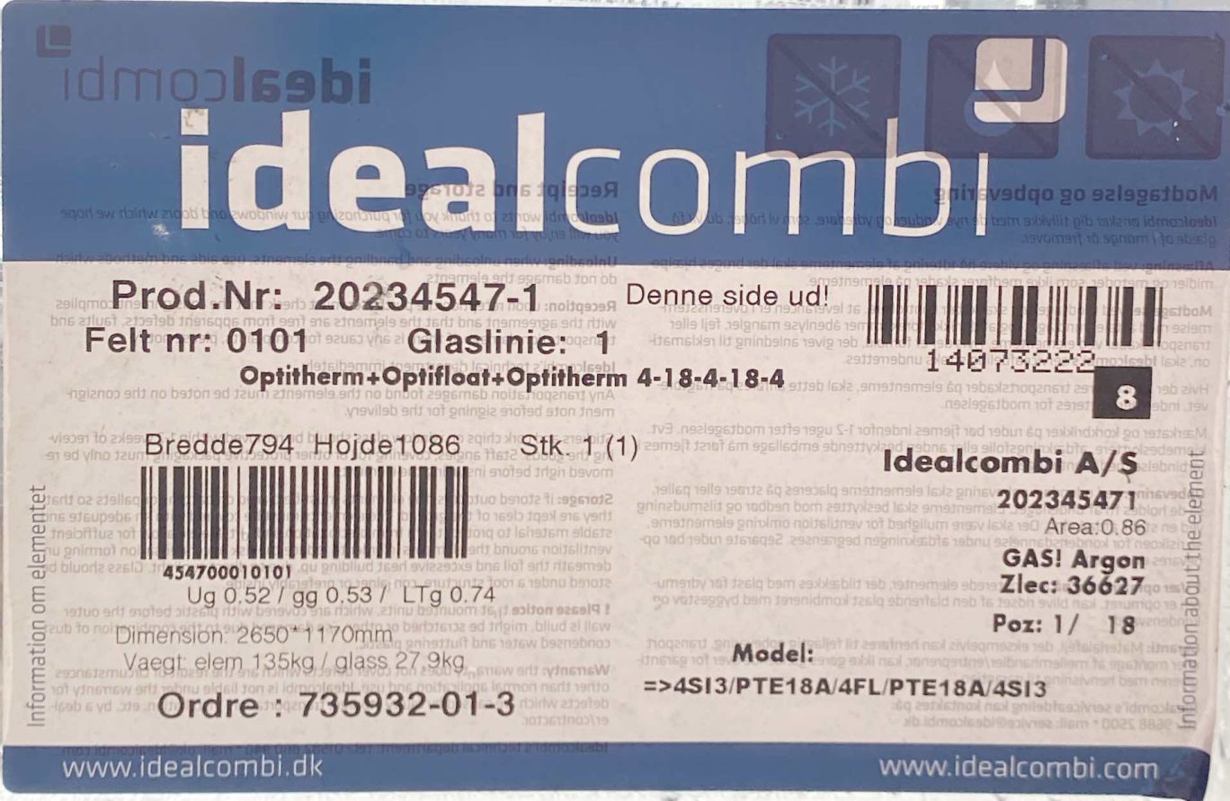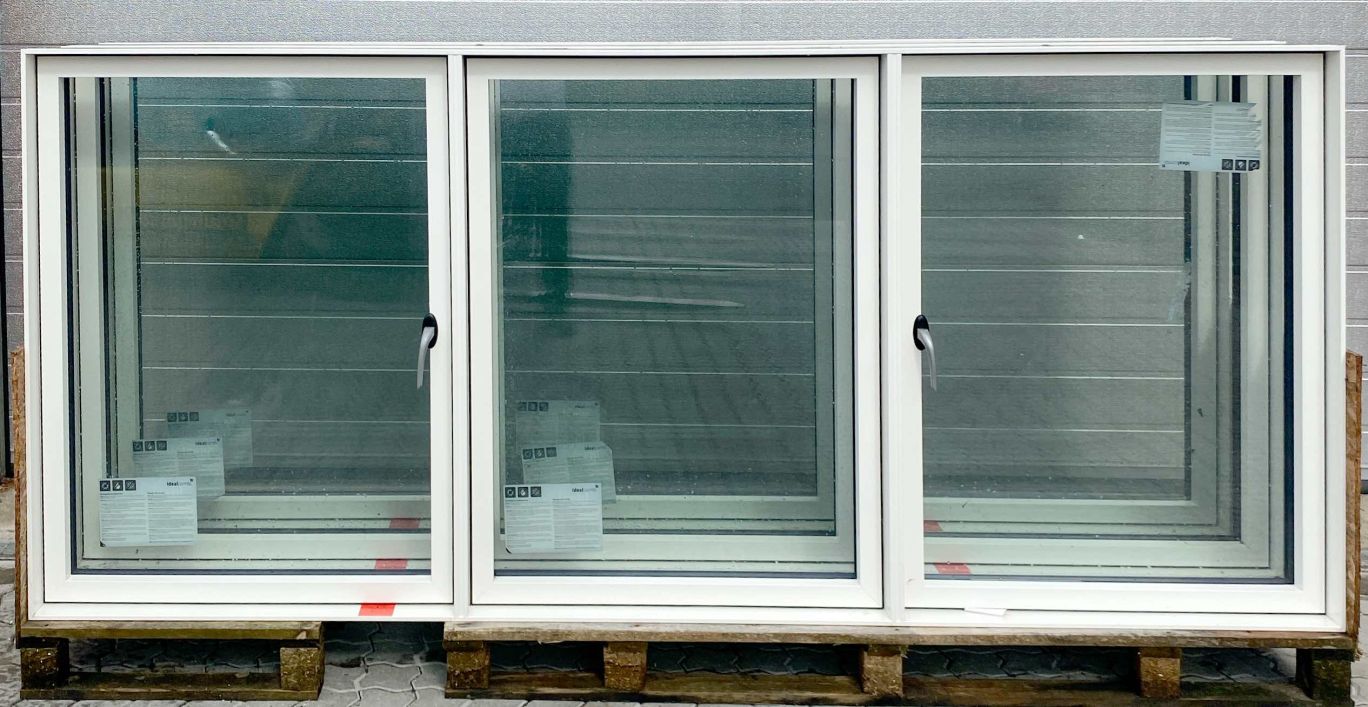 Ny og ubrugt aluminiumsvinduer fra ideal combi med 3 lags lavenergiglas.