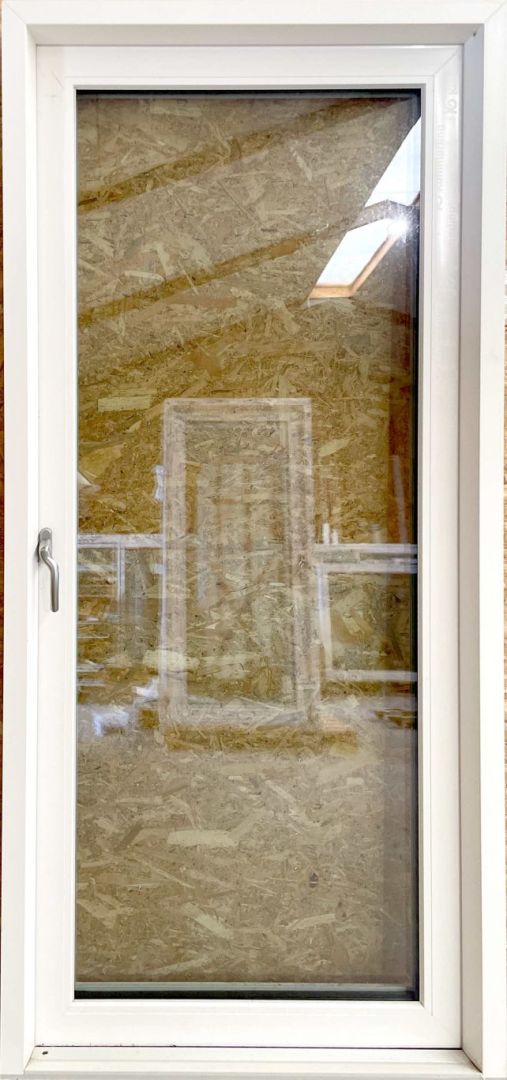 Ny og ubrugt terrassedør i plast med 3 lags lavenergiglas – venstre udadgående.