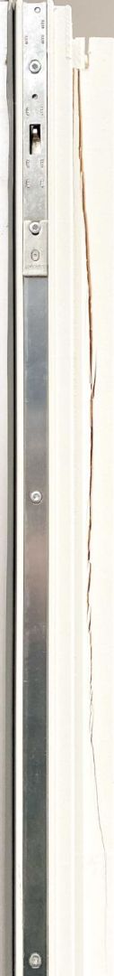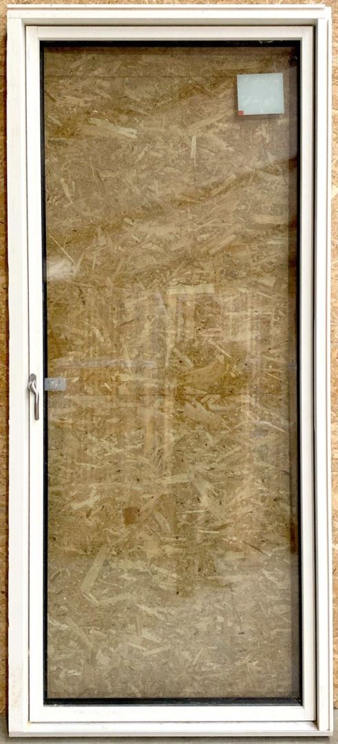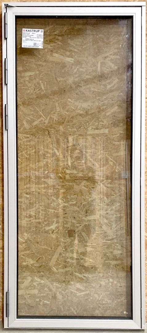 Terrassedør i træ/alu med 3lags lavenergiglas, venstre udadgående. Det er en skade på døren, se billede, kan repareres af køber