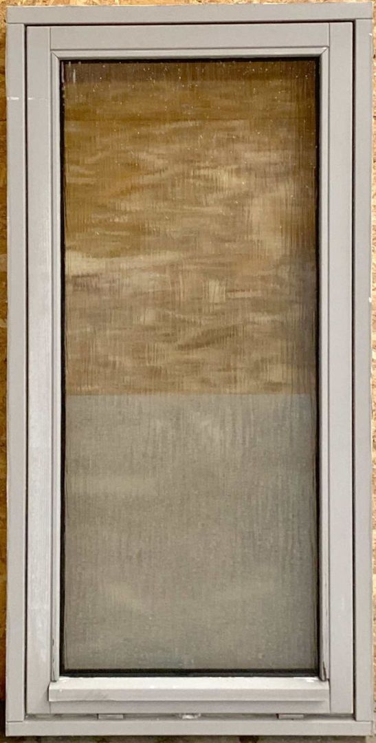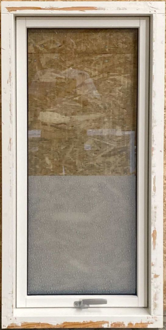 Badeværelsesvindue i træ med matteret 2 lags termoglas.