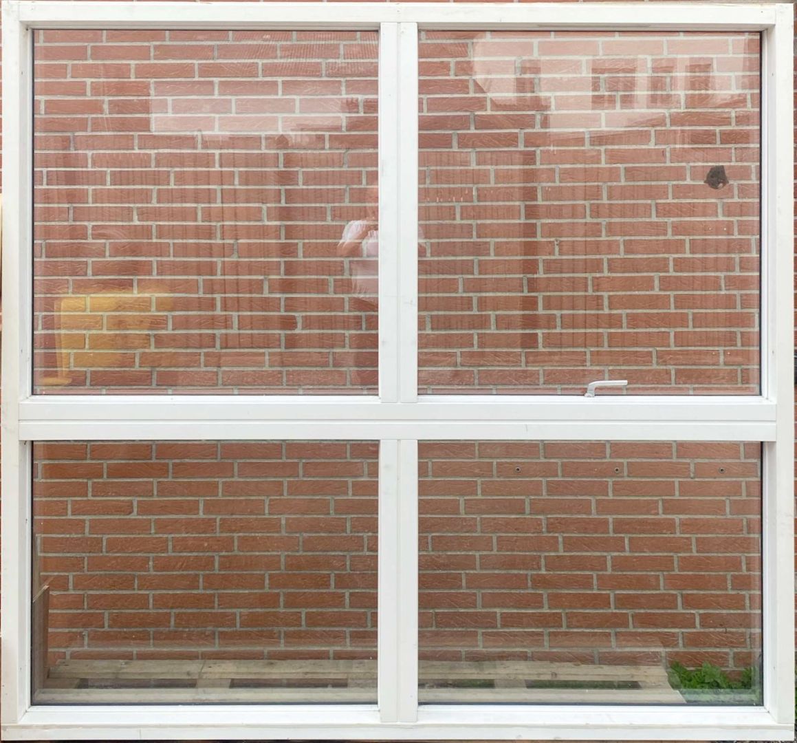 Tophængt træ/alu vinduesparti, 2 lags glas