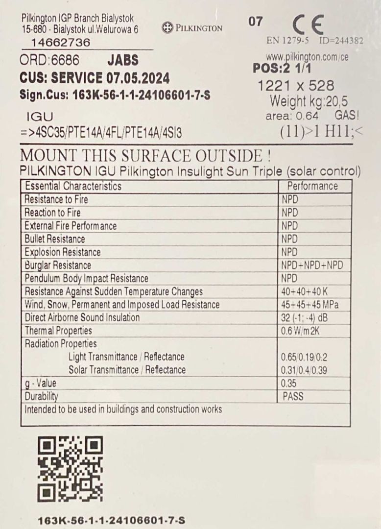 Ny og ubrugt tophængt træ vindue med 3 lags lavenergiglas ( Ug- værdi 0,5 til 0,7 )