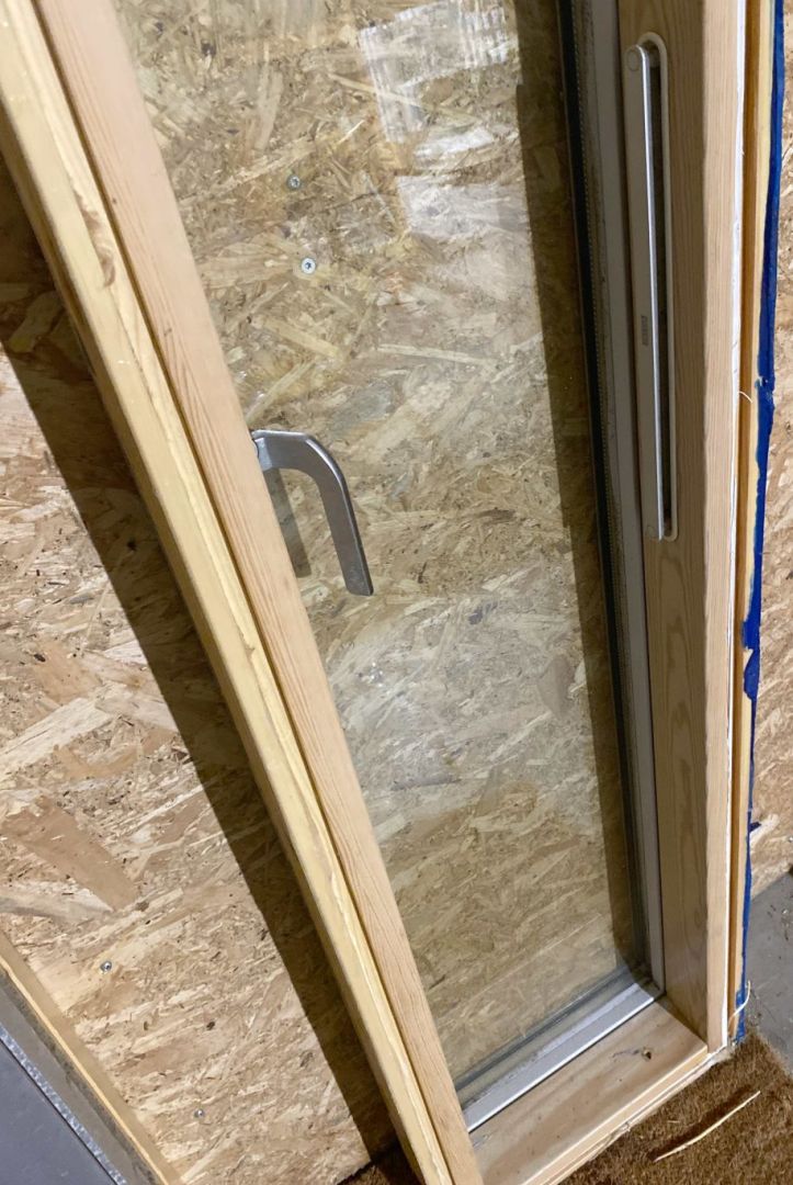 Tophængt træ/alu vindue med 2 lags termoglas og udluftningsventil.