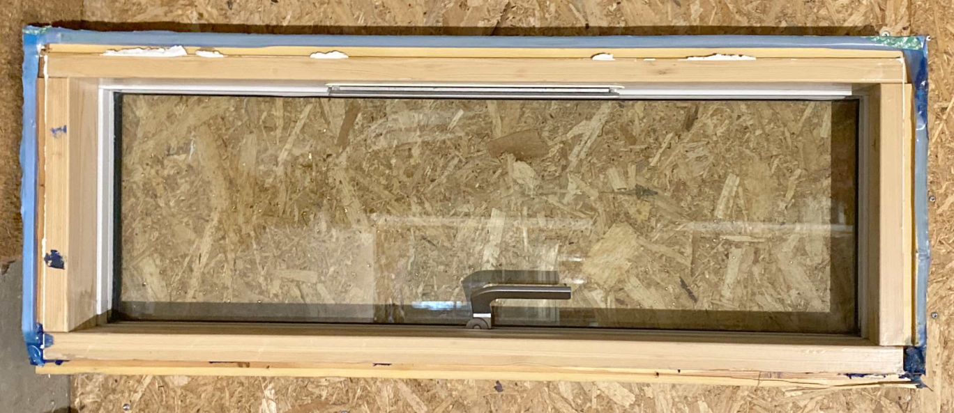 Tophængt træ/alu vindue med 2 lags termoglas og udluftningsventil.