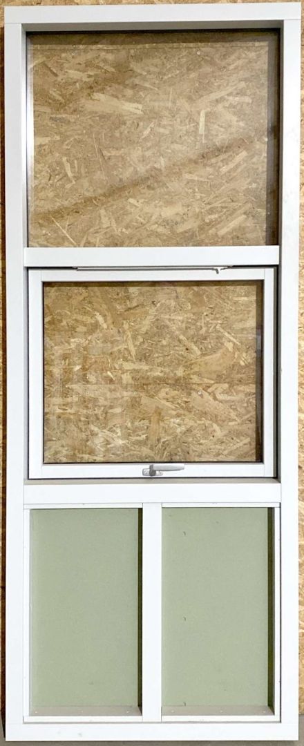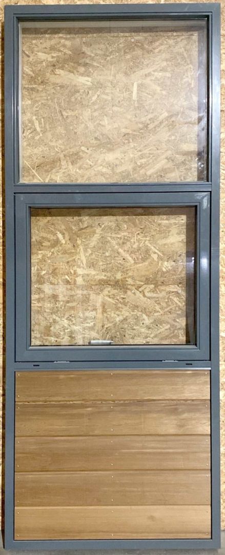 Tophængt vinduesparti i træ/alu med 2 lags termoglas