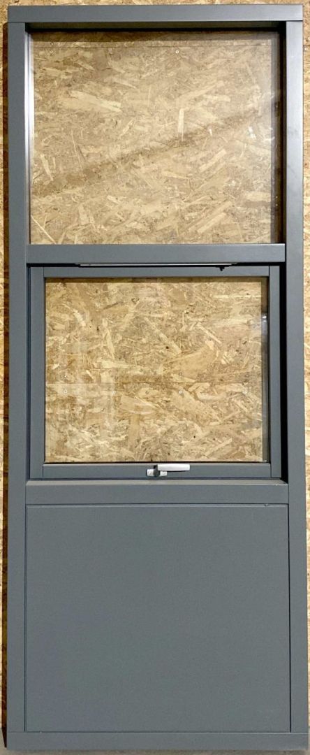 Tophængt vinduesparti i træ/alu med 2 lags termoglas